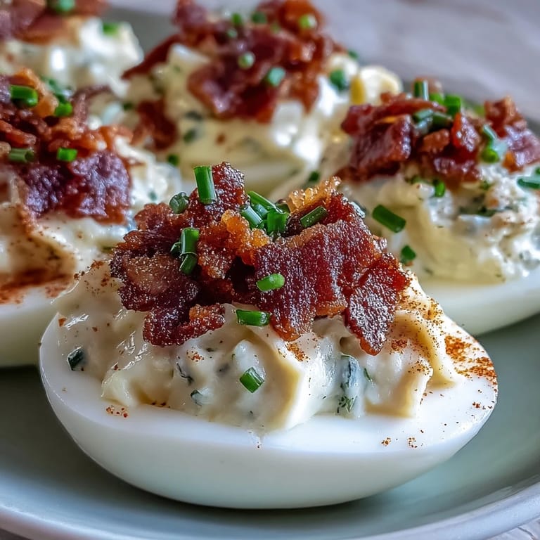 Gathering all the garnishes in little bowls on the counter is my secret to stress-free assembly, and letting someone else sprinkle the paprika turns it into a shared moment. Choose serving platters that show off the eggs' colors and textures—sometimes I use vintage trays for charm, or just a simple white plate for contrast. No matter how they look, make sure each egg gets its fair share of bacon and chives; uneven topping is my pet peeve.