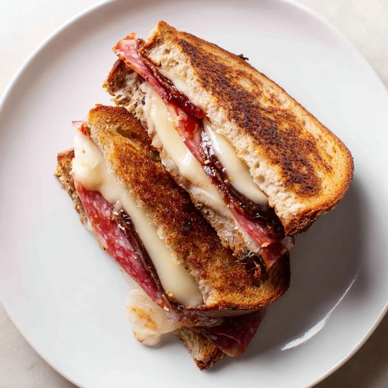 Save to Pinterest I discovered this sandwich on a lazy Saturday afternoon when my neighbor stopped by with a wedge of aged Gruyère and I realized I had a jar of fig jam sitting in the back of my pantry. Instead of making the usual grilled cheese, I started layering—prosciutto, salami, creamy brie—and something clicked. The sweet jam against the salty cured meats felt like a conversation happening on the plate, each flavor introducing itself to the others. Twenty minutes later, I had a golden, melty masterpiece that tasted like I'd been planning it all along.