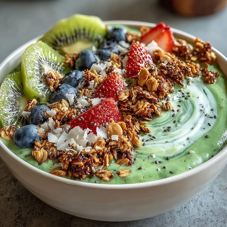 Save to Pinterest My roommate came home one morning looking completely exhausted, and I handed her a bowl of bright green smoothie with granola scattered across the top. She took one spoonful and her whole face changed—suddenly she had energy again, and I realized this wasn't just breakfast, it was a mood shifter. Now whenever someone needs a little spark, this is what I make.