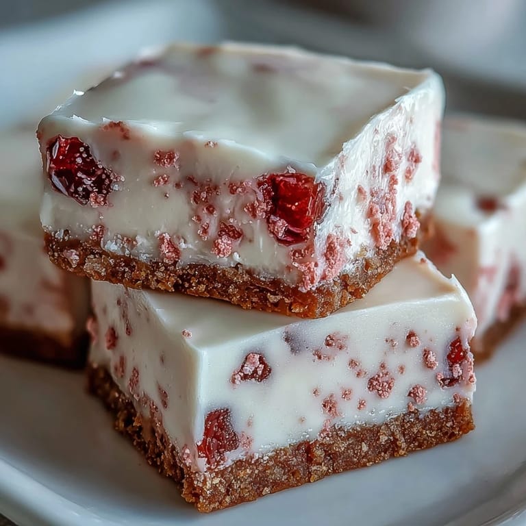 Save to Pinterest The smell hit me before I even opened the fridge: sweet, floral, unmistakably strawberry. I'd tucked the tray in late the night before, skeptical that something this pink could taste like anything but sugar. When I peeled back the plastic wrap that morning, the fudge had set into glossy squares that wobbled just slightly when I nudged the pan. One bite proved me wrong—creamy, tangy, with that crunchy base anchoring every mouthful.
